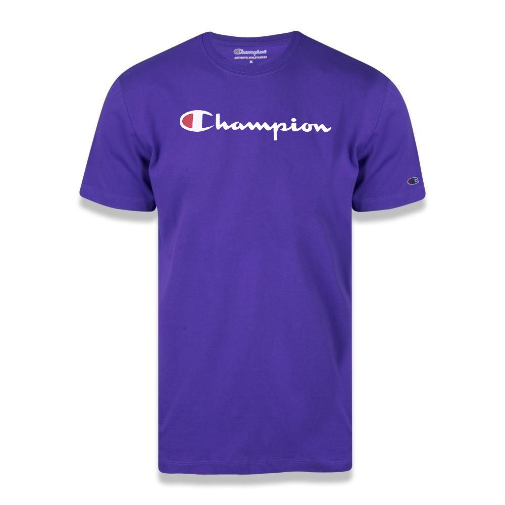Camiseta Manga Curta Champion Script Logo Print Roxo