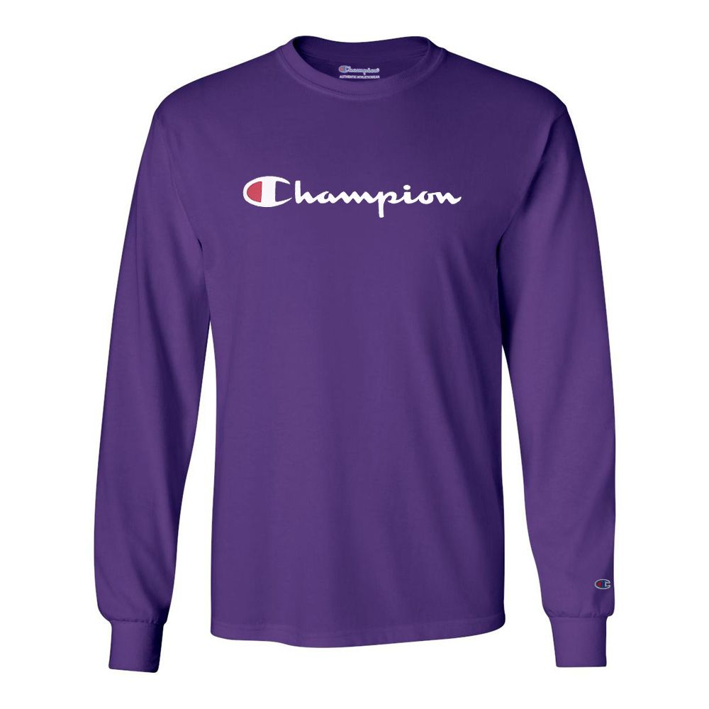 Camiseta Manga Longa Champion Script Logo Roxo
